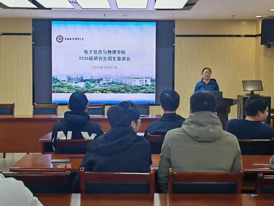 10月21日,学院在求是楼908会议室举办2026级研究生招生宣讲会。宣讲会由副院长秦姣华主持,面向2022级应用物理学、通信工程、自动化及电子信息工程专业有意向报考研究生的本科生。