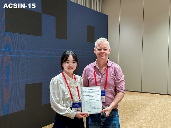 第十五届原子尺度表面、界面和纳米结构国际会议(ACSIN-15)于5月10日至13日在苏州召开,我院青年教师彭妙博士应邀出席并在“纳米光子科学”主题分会作题为“Design and applications of metamaterial photonic probe”的学术报告,受到与会专家好评。澳大利亚新南威尔士大学彼得·约翰·里斯(Peter John Reece)教授为彭妙博士颁发了“Invited Talk speakers in ACSIN-15”表彰证书。