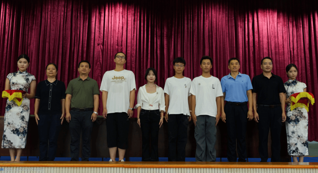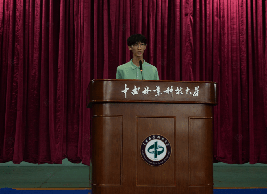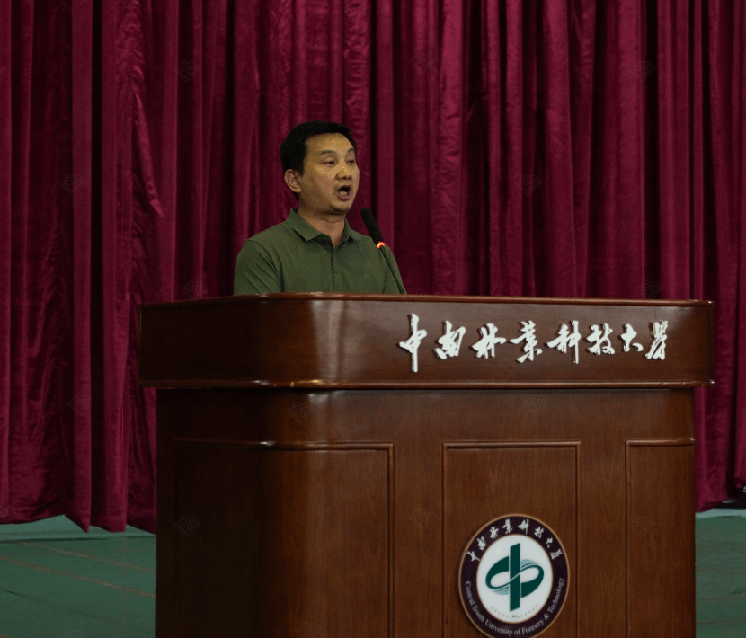 “开学第一课”暨师生见面会在庄严的国歌声中正式开始,全体师生肃立注目,现场气氛隆重而热烈。会议随即举行了新生佩戴学院徽章仪式。学院领导共同为四位新生代表佩戴徽章,随后全体新生起立自行佩戴。这枚徽章不仅象征着“电物人”的身份,更传承着学校“求是求新、树木树人”的办学精神,承载着每一位中南林学子的责任与使命。